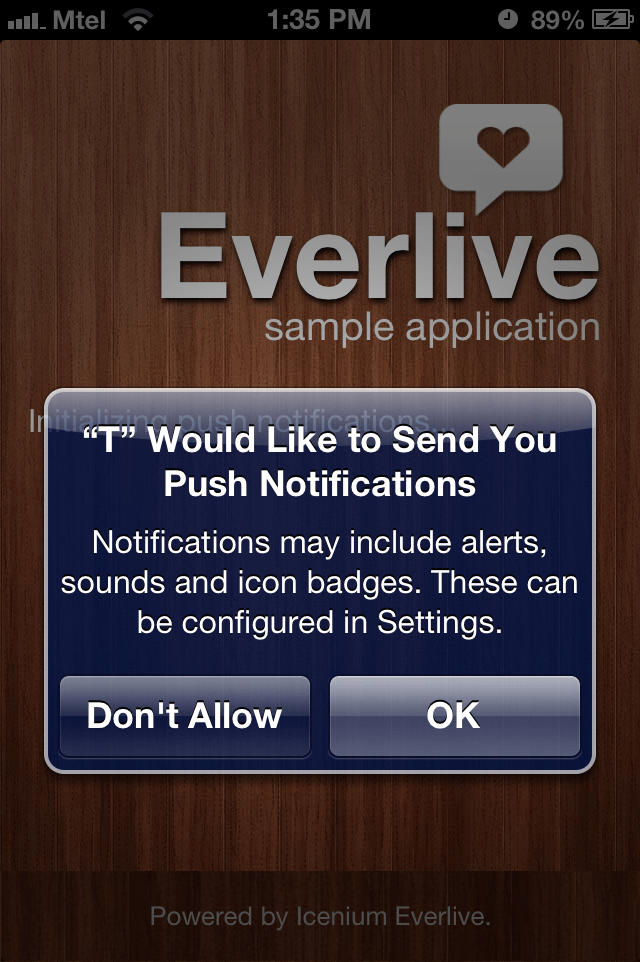 I am happy to announce that Icenium Everlive now supports the ability to send push notifications to iOS, and Android devices. Using Everlive for push notifications removes the complexity of integrating with multiple vendor-specific notification services and gives you an easy to use client SDKs.