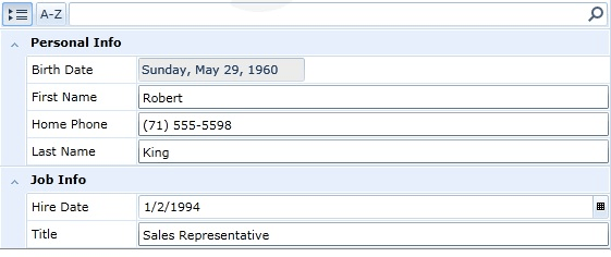 <telerik:PropertyDefinition DisplayName="Hire Date" GroupName="Job Info">