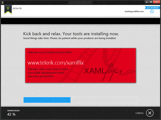 The Telerik Control Panel will download the necessary files for installation and then install them to their location. Easy as 3.14159265!