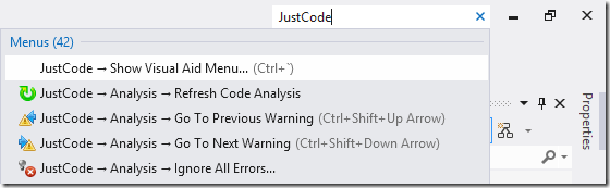 Visual Studio 2012 comes with a few new features, including asynchronous solution loading and quick launch. Both of them just work as well. Code analysis will not show errors until all projects are loaded, and you can now use the quick launch to access JustCode features.