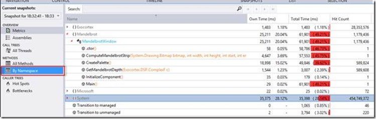 The Performance Profiler received some enhancements as well. A major new feature is the ability to group methods by namespace. (Figure 3)