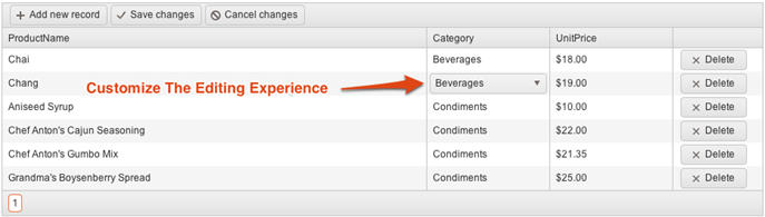 You can now specify a template for your editing experience to make use of other Kendo UI widgets thusly restricting input to valid values only. A better experience for your users, and less input validation for you.