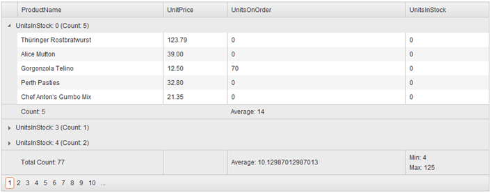 In addition, the grid now has the ability to deal with aggregates, meaning you can now display summaries in your grids including count, sum, min, max and average. This automatically creates summary data inside of your grid. Without you having to do any extra work. Combined with current grid features like grouping and sorting, this puts true Excel like power in your grid.