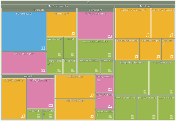 When we started our work on Telerik’s tree mapping product we took a step back and researched how these kinds of visualizations are used. We did an extensive research on what kinds of data people visualize using treemaps. The results from our investigation turned out to be really interesting.