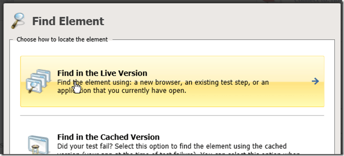 All this is easy to do via the Edit Element dialog. (You’ll need to have the row added in to the Element Repository already.) Right-click on the element in the repository and select Edit Element (The image below is from Test Studio Express in Visual Studio. It’s the same process in Test Studio Standalone.)