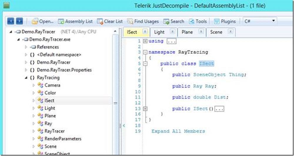 Figure 1: A view of the new tabbed interface in JustDecompile
