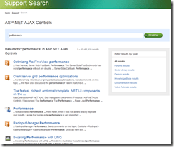 With the brand new look-and-feel of telerik.com we introduced for the landmark Q3 2008 release you probably noticed that the support resources searching capabilities have changed, too. Our aim was to expose intuitive and straight-forward means to browse the available resources based on their type and find the information/examples you need in a blink of an eye. In a nutshell, we would like each visitor to have the ability to search by product line and get a list of results with a leading indicator image designating the resource type (demo, help topic, knowledge base article, code library project, etc.).