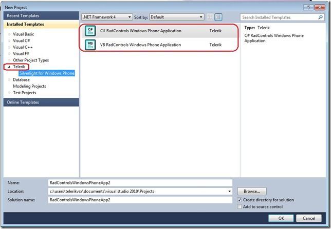 Let’s start with the creation of a new Telerik Project - you will find our project templates in the standard New Project dialog: