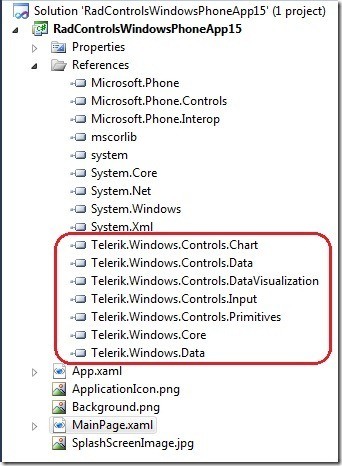Once you click finish you will have new Telerik Silverlight for Windows Phone project configured. You can find all selected assemblies during project configuration already added to References: