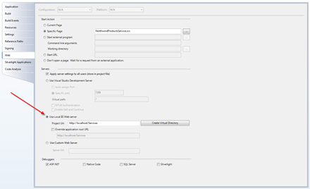 The approach I like to take is to have Visual Studio add the project to my local instance of IIS as a virtual directory of the default web site. This method ensures that I will always know ahead of time the address at which both the site and web service will be hosted. I also get the added bonus of not being able to run the app even when Visual Studio is closed. To configure this setting, right-click on the project and select Properties. Select the Web tab and click the Use Local IIS Web server radio button. Give your project a URL and click the Create Virtual Directory button.