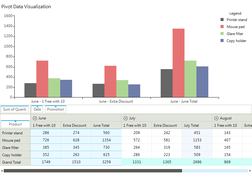 The integration between RadChartView and RadPivotGrid will allow the end-users to quickly get their selected data visualized as intuitive charts. These will turn any piece of big data into digestible and powerful insights to empower all stakeholders’ decision making: PivotGrid ChartView Integration