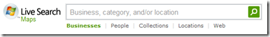 The instructional prompt effectively conveys to the user where to type a title and subtitle for the slide.  Better yet, the user can ignore these prompts and proceed with other activities in the application.  Live Search Map provides another example of using instructional prompts to tell the user additional information about what can be searched, see below.