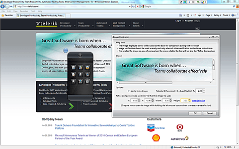 With the Q2 Release WebUI Test Studio 2010.2 is also introducing “Image Verification” – a powerful test recording feature based on the element’s visual rendering rather than the attributes of that element. Unlike other tools that support the feature, WebUI Test Studio offers precise “pixel-by-pixel” testing which allows users to refine the image verification they want to craft.