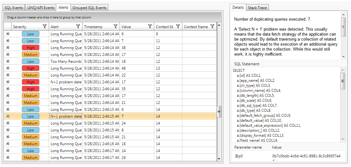 In addition to these features, the new OpenAccess profiler provides analysis and warnings about potential issues.  The analysis system provides alerts for situations like n+1, and long running queries, and goes a step further by suggesting ways to resolve the issues.