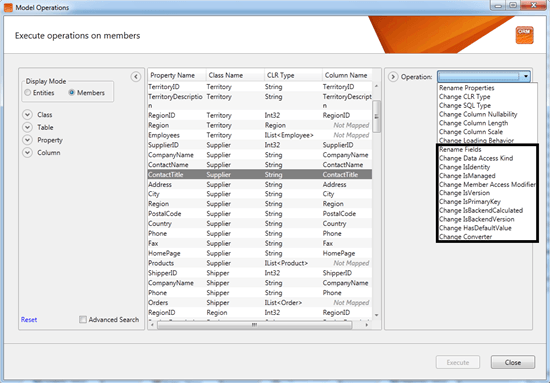 Now you will have control over most of the properties offered by OpenAccess Visual Designer both on the Members level and on Entities level.