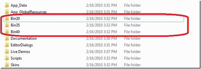 Closely following the Microsoft's .NET framework release schedule and being one of the first who announced VS 2010 Beta2 and RC support, we are going to ship .NET 4 assemblies of our controls residing in /bin40 folder of the RadControls for ASP.NET AJAX installation. An important detail is that now the assemblies will be separated into /bin20, /bin35 and /bin40 folders (as opposed to the current /bin and /bin35 folders). The dlls are grouped in conjunction with one single criterion - the .NET framework they are built against. Thus depending on the targeted .NET framework, you will be able to choose the relevant assemblies and plug them in your project.