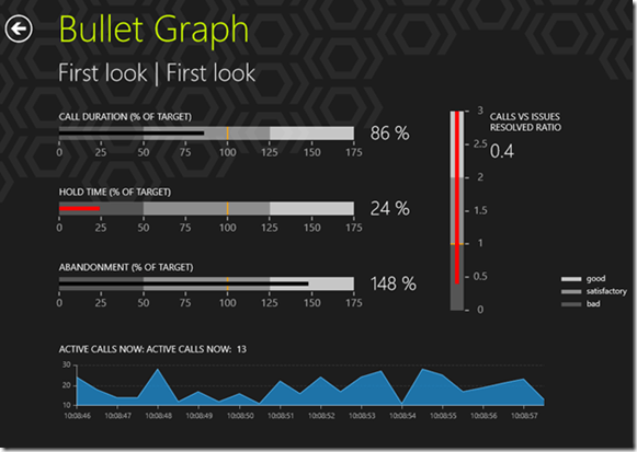 The Telerik Bullet Graph provides data visualization to concisely describe a single datum (the featured measure) compared to one or two additional data (the comparative measures). You can get instant access to the overall progress of a process or task such as year-to-date sales over a projected target. RadBulletGraph can be positioned horizontally or vertically.