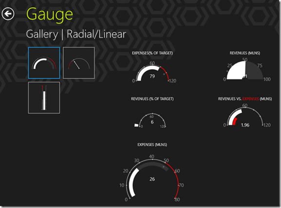 Telerik Gauges provide a rich assortment of radial, numeric and linear gauge types, with powerful customization capabilities, perfect for displaying distance, speed, duration or other dynamic data. You can easily distinguish important metrics by selecting among predefined indicators like arrow, bar, segment, etc.