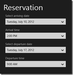 Surprisingly, Visual Studio for Windows 8 XAML does not come with either a date or a time picker. Not to worry, we’ve got you covered. Reservation