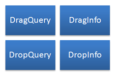 The DragDrop manager “speaks” to the application through events. There are two types of events, one where the manager asks “What to do now?” and another which just informs us “Ok, this is what I have done”. These events are routed events which originate both at the target and at the destination of a drag/drop operation.