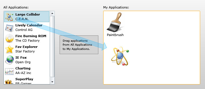In the example the ListBoxes and the DragCue have different templates for the same business objects (ApplicationInfo) which give different look for the same underlying data.
