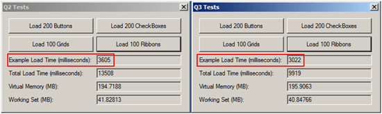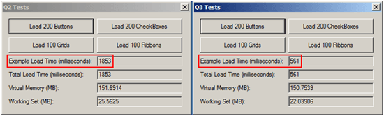 To measure the actual benefit of this improvement, we have performed several simple tests, which do nothing but create several hundred instances of a given control type – e.g. RadButton and measure the time needed to accomplish the task.