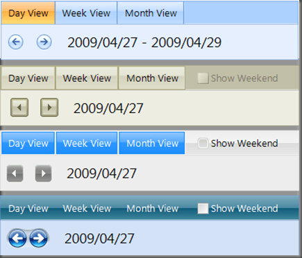 Designed as a separate component, the RadSchedulerNavigator can be easily bound to a RadScheduler instance both in the Visual Studio Designer and in runtime. The control serves as a convenient UI for navigating between the different views and also shows information about the time period which is displayed in the currently active view in the RadScheduler. The user can also show or hide the weekends by using the “Show Weekend” check-box exactly as in Microsoft Outlook UI.