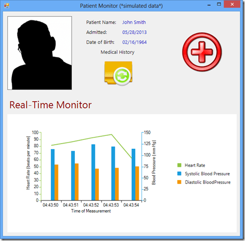 As mentioned above, it is best to use a control suite when you want to have real-time live data displays and dashboards. An example of a live data requirement can be a patient monitoring application. In this example, we used RadControls for WinForms to build a solution to demonstrate live updates of data into a RadChartView control. The control is responsible for displaying the heart rate and blood pressure values of a patient at 5 second intervals.