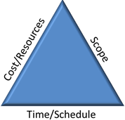 Increasing the scope (for example) will extend the right side of the triangle, and schedule and cost must be extended to keep everything in balance.