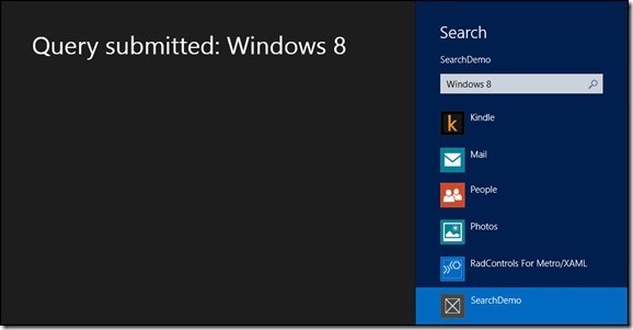 In any case, every program that implements a search contract will be listed and the user is free to choose a different application to search. In the image above, for example, we can see that Store, Bing, Finance, Games and so forth are all searchable.