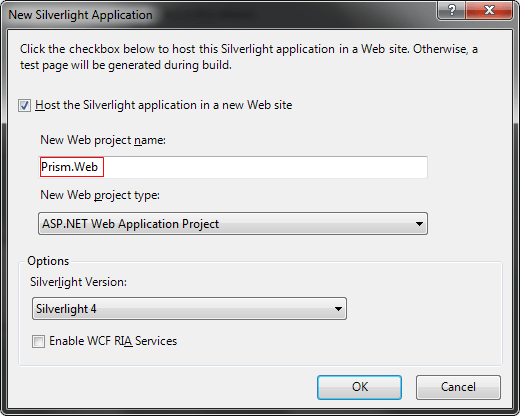 Start off by creating a new Silverlight solution. Name the Silverlight application Prism.Shell and the Web project - Prism.Web