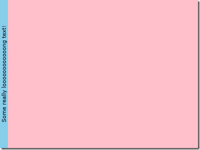 Not quite what we expected, eh? Well, first of all the text is not gone. It really is rotated -90 degrees but since the layout of the gird panel did not change it was pushed out. You can see what happens if you try to rotate the text by smaller angles. Unfortunately all you have in Silverlight is the RenderTransform so we must use it if we want to rotate the text. But what can we do about the layout problem? Well, as it turns out we can write our own custom panel which will transpose the text width and height and position the string in a more appropriate way: