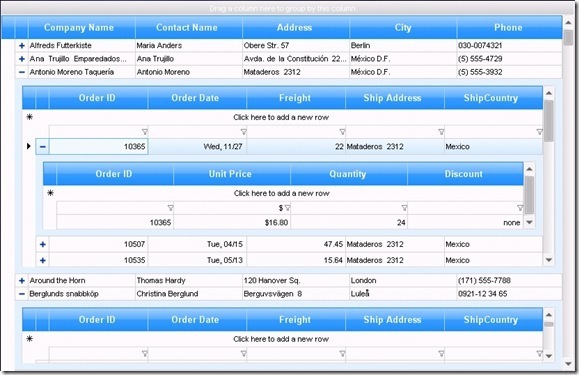 Up until Q3 2009, RadGridView for WinForms used a scrollbar in every child view when in hierarchy mode. This however can be a problem when there are many nested levels, i.e. it can lead to a situation where you do not have enough visual estate to scroll through the hierarchy: