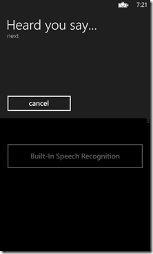 While this is great for some applications, others may like a less intrusive way of obtaining speech data from the user. This is where Telerik RadControls for Windows Phone 8 comes in. No GUI is required and you can declare voice commands declaratively through XAML instead of code-behind. The example shown above was created through code-behind listed below.