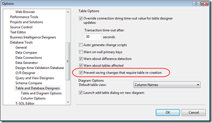 Saving changes is not permitted. The changes you have made require the following tables to be dropped and re-created. You have either made changes to a table that can't be re-created or enabled the option Prevent saving changes that require the table to be re-created.