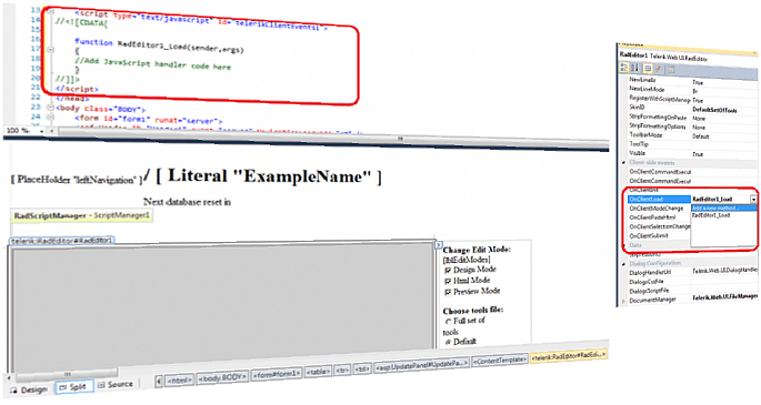 Finally, we introduce a very handy design-time feature for our AJAX controls in VS 2008/2010, i.e. the ability to auto-attach client event handlers by selecting a new or existing handler method for this purpose: