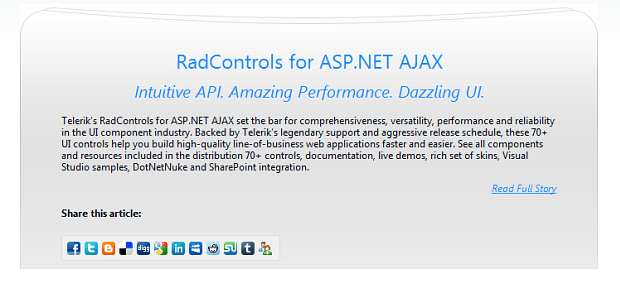 The Premium Telerik AJAX component set grows with a couple more controls - Org Chart and Social Share.