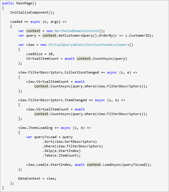 As you can see the only hardcoded value here is LoadSize for the virtual collection and everything else is retrieved and applied asynchronously using async and await keywords.