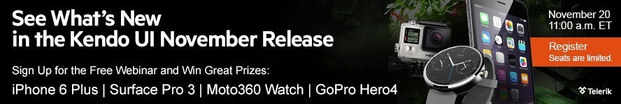 Join us for the Kendo UI November Release Webinar on November 20 at 11 a.m. ET to have a first-hand experience with the newest Kendo UI release, which facilitates you manipulate data with the following features: