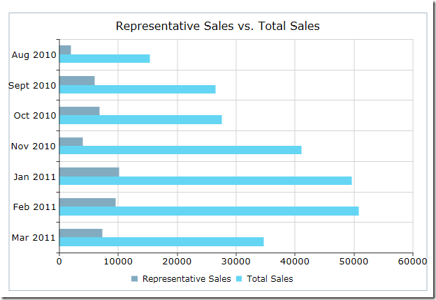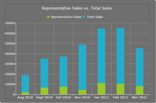 The Beta release introduces new HTML5-driven MVC charting extension which utilizes SVG/VML for vector graphic drawing. Light-weight and cross-browser component, built from scratch and in perfect harmony with the MVC design pattern paradigm, the chart supports bar/stacked bar series, Ajax binding and exposes basic client API in its Beta version. It will support line series and extended client API for the official Q2 2011 drop.