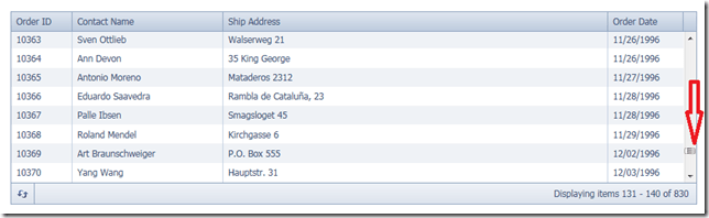 • Yahoo-style paging - Cumulative virtual scrolling that gives the ability to load more items in the grid on demand using its vertical scrollbar.