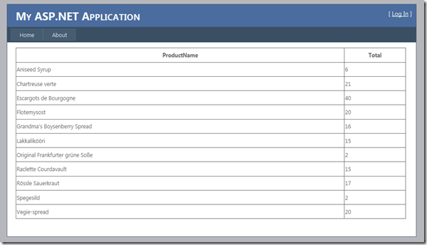 For sake of simplicity, we will bind the result to a GridView in a simple web application using the following code in the Page_Load method (here I assume that you’ve created a simple web application and added a GridView to it)