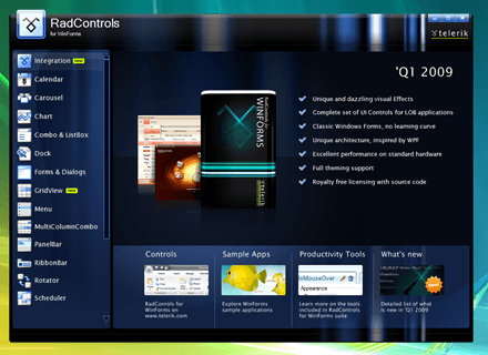 If you are still not convinced, download the new Q1 2009 version of RadControls for WinForms and run the demo. And while having fun, do not forget that it really is 100-percent WinForms 2.0 app!