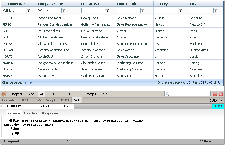 All operations like paging, sorting and filtering are automatically persisted using $top, $skip, $orderby and $filter parameters!