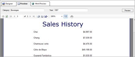 Now you can preview the results in the report designer by clicking on the Preview tab.