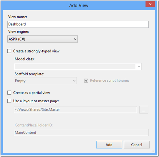 <h2>Hello Reporting</h2>@Html.Partial("Dashboard")