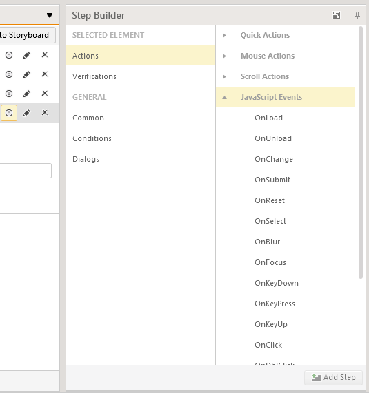 Prior to R1 2015, The Step Builder offered a few options that allowed you to craft certain types of steps using existing elements added by our powerful recorder. Now, you can use the new Step Builder to craft any type of step–the options are limitless. Combined with our new Element Builder, they allow fully scaffolded tests to be created before the UI is delivered.