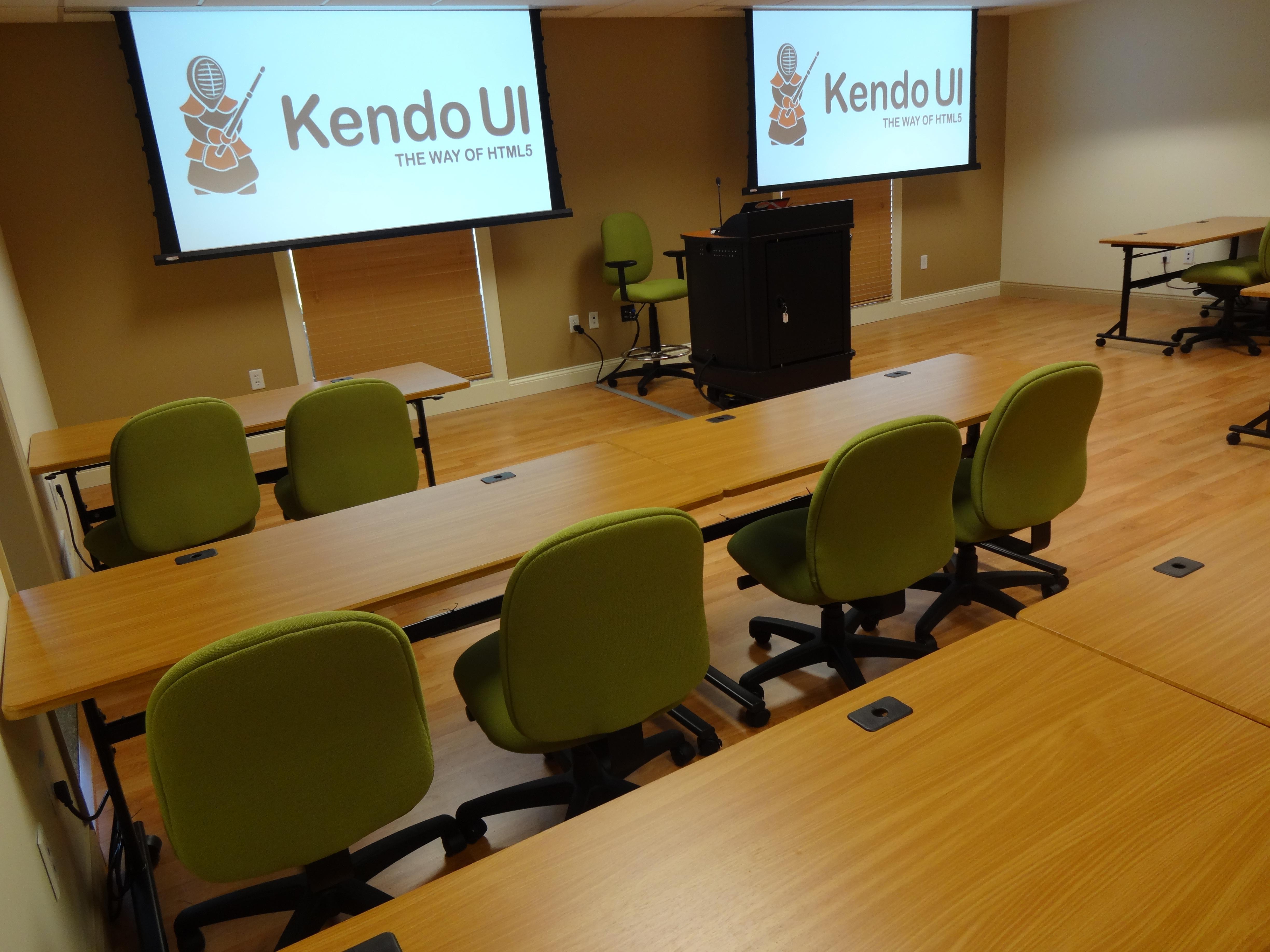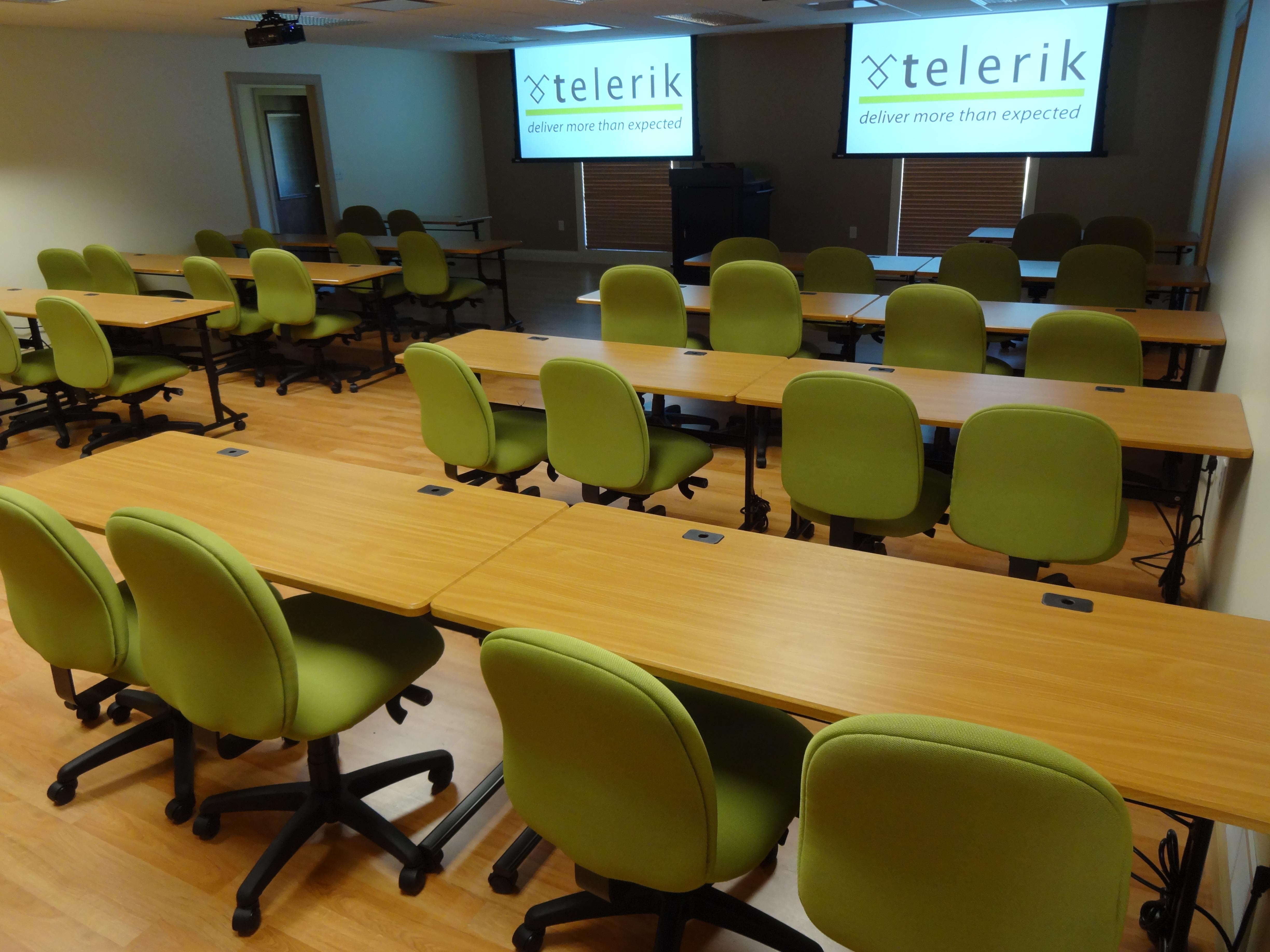 Telerik recently expanded its Hudson, Ohio location, adding additional office space as well as a state-of-the-art training facility. This location is equipped with dual HD projectors and an integrated audio system that will support stationary or wireless presenter microphones as well as computer audio.