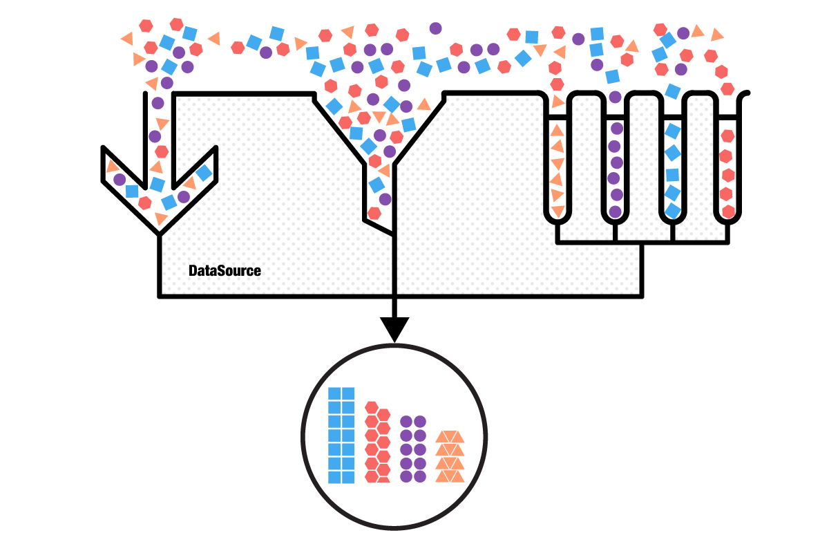 Telerik DataSource is a non-UI component that consumes raw data and processes the data operations for controls such as ListView and Chart. DataSource employs the common delegate pattern, but removes the burden of implementing different data protocols for the different controls. It supports: