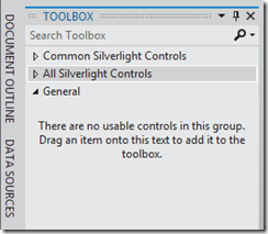 The first thing that you will notice after installing the XAML control suite is that the Telerik controls are missing from the Toolbox as shown below: